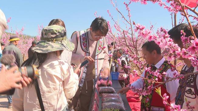 春暖桃花开,花香迎客来。在发窝乡代家村,漫山遍野的桃花竞相开放、争奇斗艳,红的像火、粉的像霞、白的像云,让人如痴如醉,犹如陶渊明笔下的桃花源。桃花林深处,游客们三五成群,或嬉戏打闹,或弄姿拍照,或围坐歇脚,身在景中,人在画中,与大自然融为一体。桃花盛开,不仅吸引了游客观赏游玩,也拉动了发窝乡村休闲旅游发展。桃花林中,发窝乡农特产品展销推介会同步进行,一些大学生还化身网络“主播”,通过视频推介+直播带货的方式,为发窝乡农副产品“代言”。