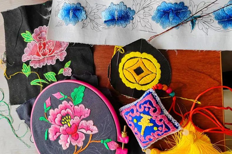 结业仪式上,每个学员手里都激动展示着自己完工的绣品,小的胸针,大的包包、衣服,针脚细密、色彩艳丽、图案清晰。“想不到打小学会的刺绣手艺,还能赚钱养家。”学员代表李梅翠拿着绣的第一个成品包开心道。培训结束后由普玉珍工作室对学员作品进行统一收购,让学员能够真真正正的实现将刺绣融入生活、变成产品、增加收入。