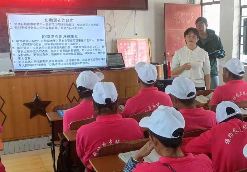 培训班上,禄劝农友培训学校的老师主要以养老护理技能培训为主要内容,涵盖老年健康护理知识、日常护理技能培训、认知疗法与情绪化护理、老年生活方式与营养饮食指导等。课程安排方面,分为理论课教学与实践操作课程,以提高学员对养老护理工作的理论认识和实际操作能力。培训课程将通过系统的教学计划和课程表进行安排,确保学员能够全面学习养老护理技能,掌握相关知识,并将其运用到实际工作中去。