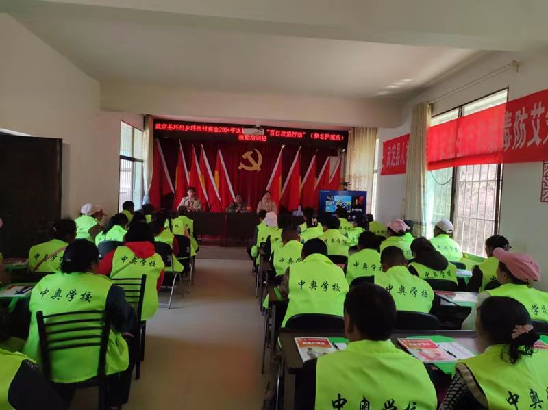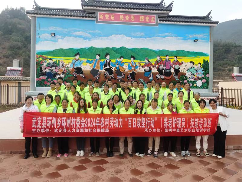 3月28日武定县人力资源和社会保障局委托昆明中奥艺职业培训学校在环州村委会举办为期15天的养老护理员培训班培训圆满结束。此次培训环州村委会以精准需求为导向,有序组织脱贫劳动力48人参与培训,考核合格人员,每人每天补助80元生活交通补贴。