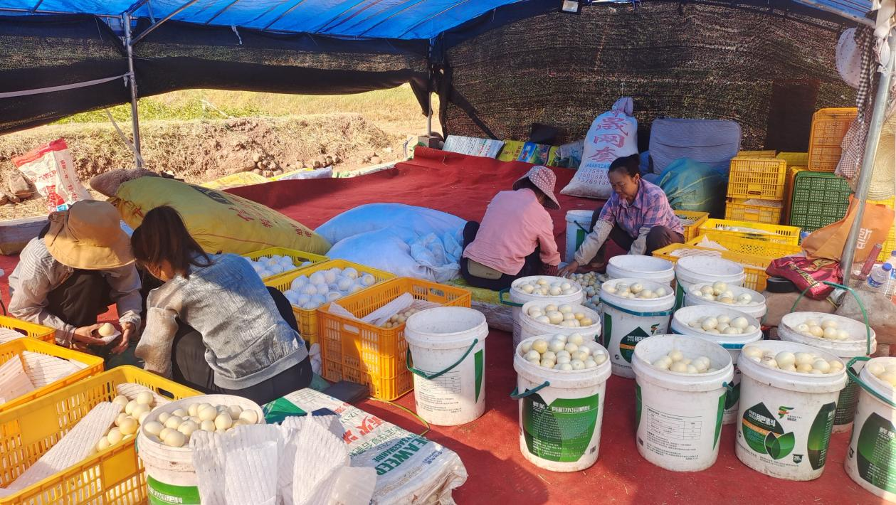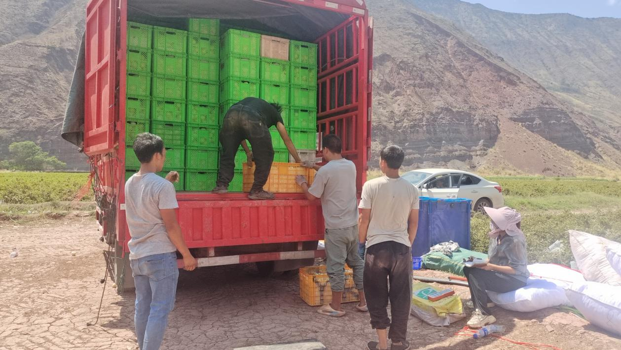 随着丰收季的到来,基地也迎来了用工高峰。每天,有近60名村民忙碌地穿梭在基地里,他们熟练地采摘、分拣、套袋、装筐、装车运输,呈现出一派繁忙的景象。