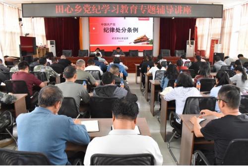 为深入学习《中国共产党纪律处分条例》(以下简称《条例》),推动党纪学习教育走深走实,5月8日,田心乡组织开展党纪学习教育读书班专题辅导,邀请县纪委县监委党风政风监督室主任王丽仙作专题辅导,乡党政班子成员、干部职工、村四职、驻村工作队员共90余名党员参加学习。
