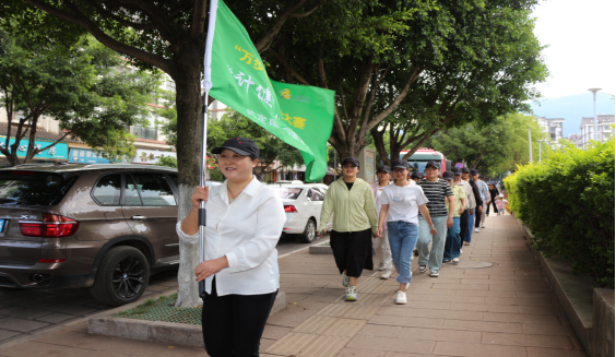 活动现场,队员们高举队旗,从卫生院出发,计步开始,沿着菜园河沿岸一线,日行万步,科学健走。队旗迎风招展,显得格外耀眼,一路绿树成荫、美景如画,按预定路线健走队伍快步前行。行进途中大家迈着轻快的步伐,精神抖擞,昂首阔步,边走边畅谈健康生活,充分展现出大家健康、文明、积极向上的精神风貌。