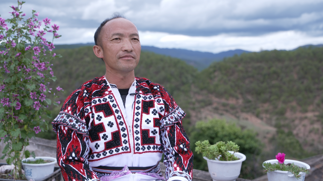 发窝乡自期村委会黑虎山村村民 王学光:我们这个衣服、裙子、披肩都是自己绘制图案然后通过刺绣、编织、蜡染等方式做出自己喜欢的样式。