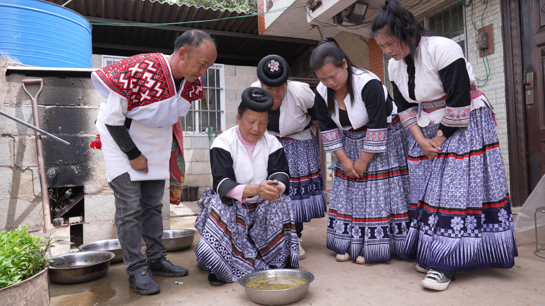 发窝乡自期村委会黑虎山村村民 马丽丽:从我记事起我都是穿着长辈们做的小裙子,在心里我就有一个梦想,以后我也能给妈妈给自己做漂亮的裙子,所以我也会跟着妈妈还有村里的老人去学习,我自己是非常喜欢这个事情的,趁现在还年轻我也想把蜡染这门手艺学会、学精,我觉得这是一件很有意义的事,我学会了这门手艺,我也会把他教给我的女儿,让她把这门手艺传承下去。