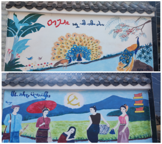 东坡村委会普照村多方争取资金,在村头村间道路两侧建设绿化景观带,打造休闲娱乐区,并依托资源优势,发挥乡贤能人作用,开展“绘美乡村”行动。秉承共建共享原则,广泛听取村民意见建议,以“家风家训家规”为主题,在全村主道两旁、人群聚集地的外墙上挥毫泼墨、妙笔丹青。所所卡村委会勐果村则在外墙上充分展现傣族风俗风貌,方寸之间尽显傣乡活力与魅力,返璞归真,留住乡韵乡情,宣扬传统文化,营造良好的文化氛围,与绿水青山相得益彰。
