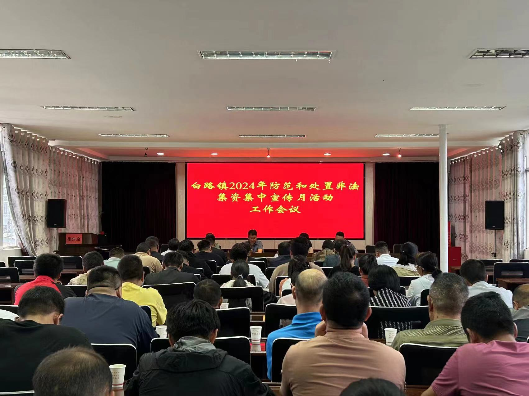 为进一步加大打击非法集资的力度,营造和谐的社会环境,6月16日晚,白路镇人民政府组织召开了防范和处置非法集资集中宣传月工作会议,全体干部职工及各村委会书记参加了此次会议。