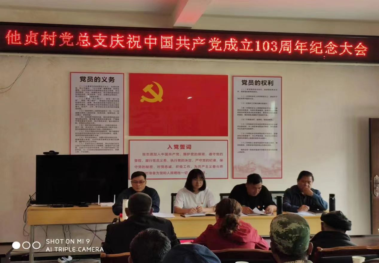 7月1日,环州乡他贞村党总支召集辖区全部党员在他贞村委会开展庆祝中国共产党成立103周年系列主题活动。