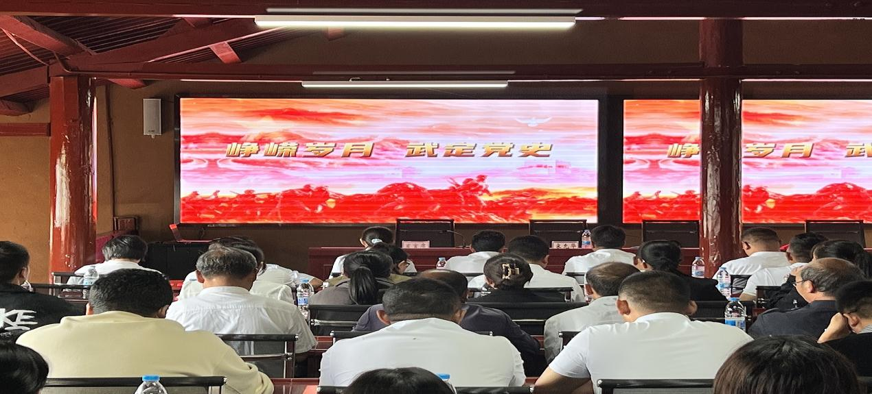 在木高古红军大讲堂,首先组织全体干部职工集中观看党史学习教育片《峥嵘岁月武定党史》。随后,宋允华结合活动主题讲授专题党课。他强调,一要讲政治顾大局守规矩。要把准政治方向,服务中心大局,提高工作能力。坚持学在深处、谋在新处、干在实处、走在前列。二要敢担当敢负责干成事。要抓住关键点,盯住关键人。进一步健全人人负责、层层负责、环环相扣、科学合理、行之有效的责任制。三要勤沟通善配合讲奉献。要求同存异维护团结,摆正位置维护团结,真诚无私维护团结,形成“同心山成玉,协力土变金”的生动局面。