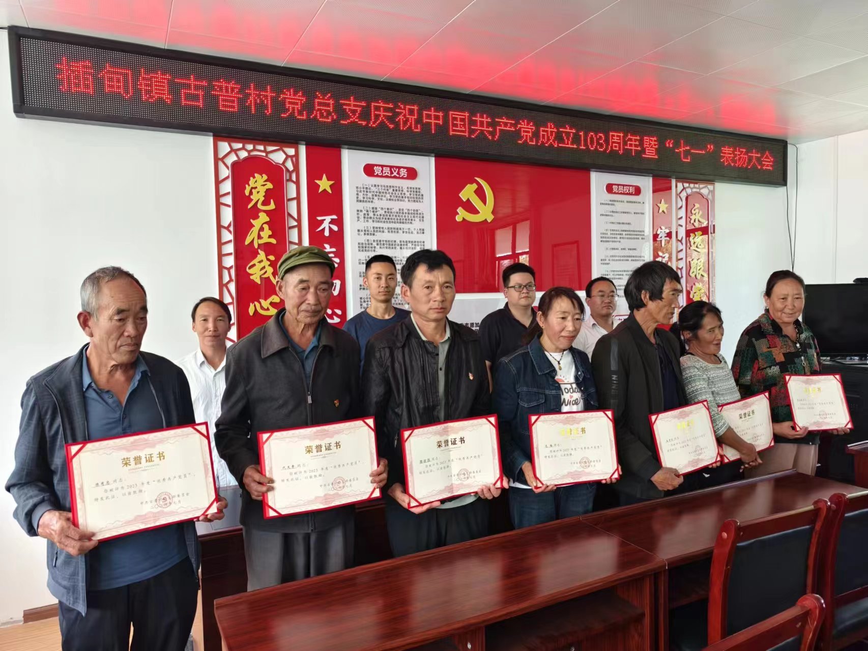 会上,村党总支为12位优秀共产党员颁发了荣誉证书,2位老同志被授予了“光荣在党50年”纪念章。