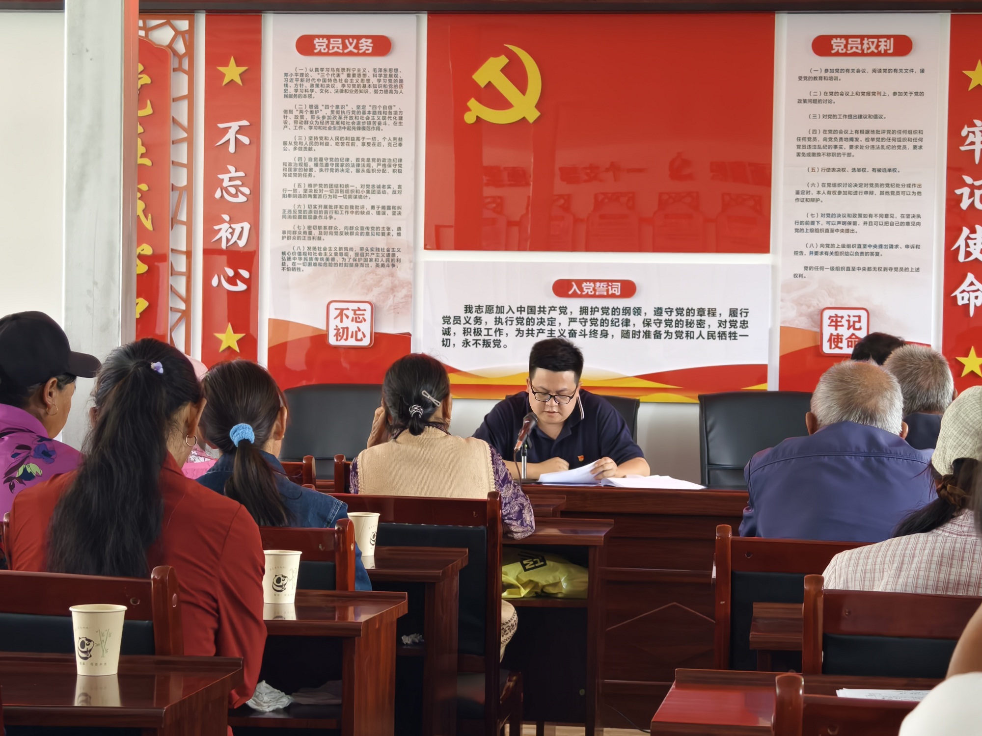 大会在庄严的国歌声中拉开帷幕,丁亚能带领全体与会党员重温了入党誓词,铿锵有力的誓词回荡在会议室中,激励着每一位党员不忘初心、牢记使命。