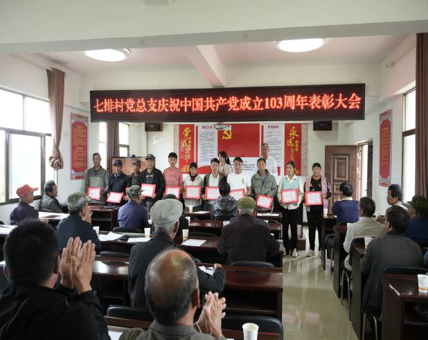 宣誓后,大会表彰了党总支11名2023年中工作认真负责、努力学习、表现突出的优秀党员,激励11名优秀党员在以后的工作生活中再接再厉,争取更大的进步,同时也勉励全体党员向11名优秀党员学习,为七排村的发展建言献策,添砖加瓦!