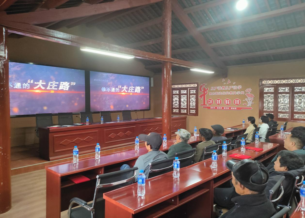 随后,组织全体党员一起观看了警示教育片《修不通的‘大庄路’》,进一步强调了党员干部应该坚守职责、遵纪守法,带领群众共同把村庄建设得更好。村党总支书记胡泽作了会议小结。