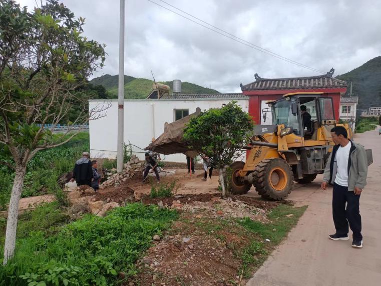 坚持党建引领,党员干部带头。此次清理整治行动以主题党日活动的形式开展,人员机械齐上阵,组织全村党员70余人,自发参与群众20余人,投入挖机一辆,装载机一辆,共清理柴堆土堆等36处。活动对大村和热水塘两个村民小组的柴堆、粪堆、土堆、石堆、建筑垃圾堆“五堆”和乱搭乱建、乱堆乱放、乱扔乱倒、乱泼乱排、乱贴乱挂“十乱”的不文明行为进行了“大清理”“大清扫” 。同时,镇村工作队员分工合作,迅速行动,带领广大党员和群众一家一户检查,清理房前屋后卫生乱象,对乱堆乱放、乱搭乱建等问题进行集中攻坚整治,同时对提升人居环境,建设美丽家园进行宣讲,进一步增强群众主动参与、从我做起、爱护环境、扮靓乡村的意识。