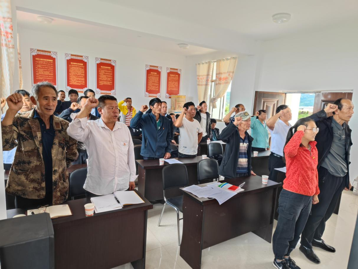 “我志愿加入中国共产党,拥护党的纲领,遵守党的章程……。”在村党总支书记杨晓倩的带领下,全体党员重温入党誓词,坚强有力的誓言,让每一位党员深深体会到了作为一名共产党员的责任感和使命感。