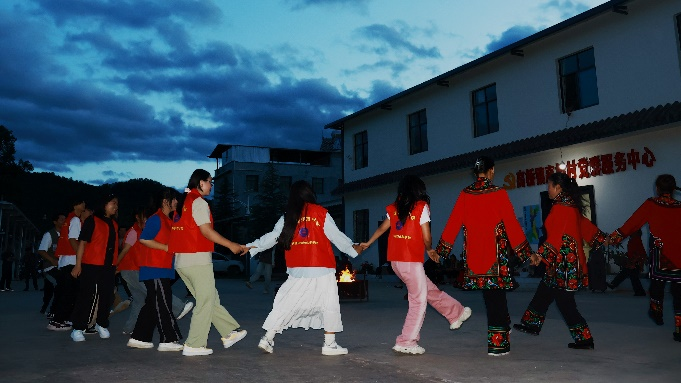 到达高桥镇后,实践团队召开小组会议,强调实践活动的纪律性和安全性,给团队成员明确了活动事宜。当晚,楚雄师范学院和云南大学滇池学院的“三下乡实践活动”团队在高桥村委会开展了联谊活动,高桥村委会村民以热情的舞蹈欢迎两支团队的到来。