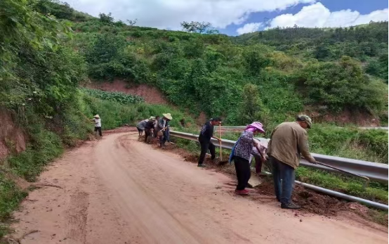“前几天降雨,一些泥土被冲到前面的路面上了,大家一起去清理……”正在号召群众清理路面的是岔河村处拉毛小组党支部书记李学平。