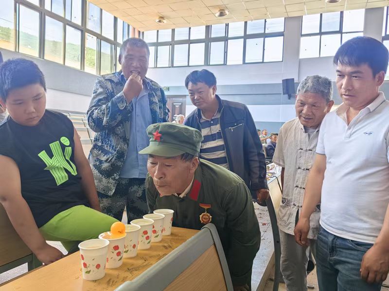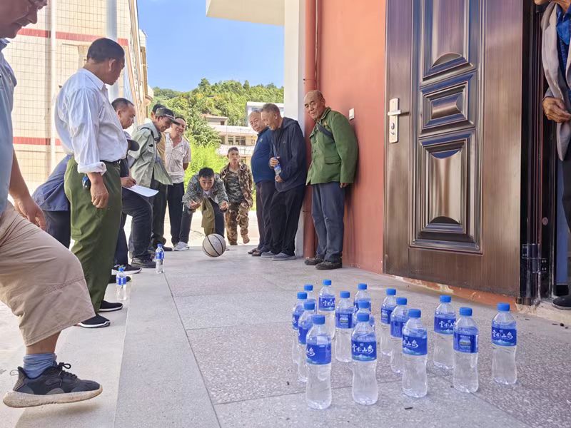 活动最后还组织了定点投篮、叠被子、吹乒乓球、套圈夺宝,矿泉水保龄球等趣味活动以及就餐。