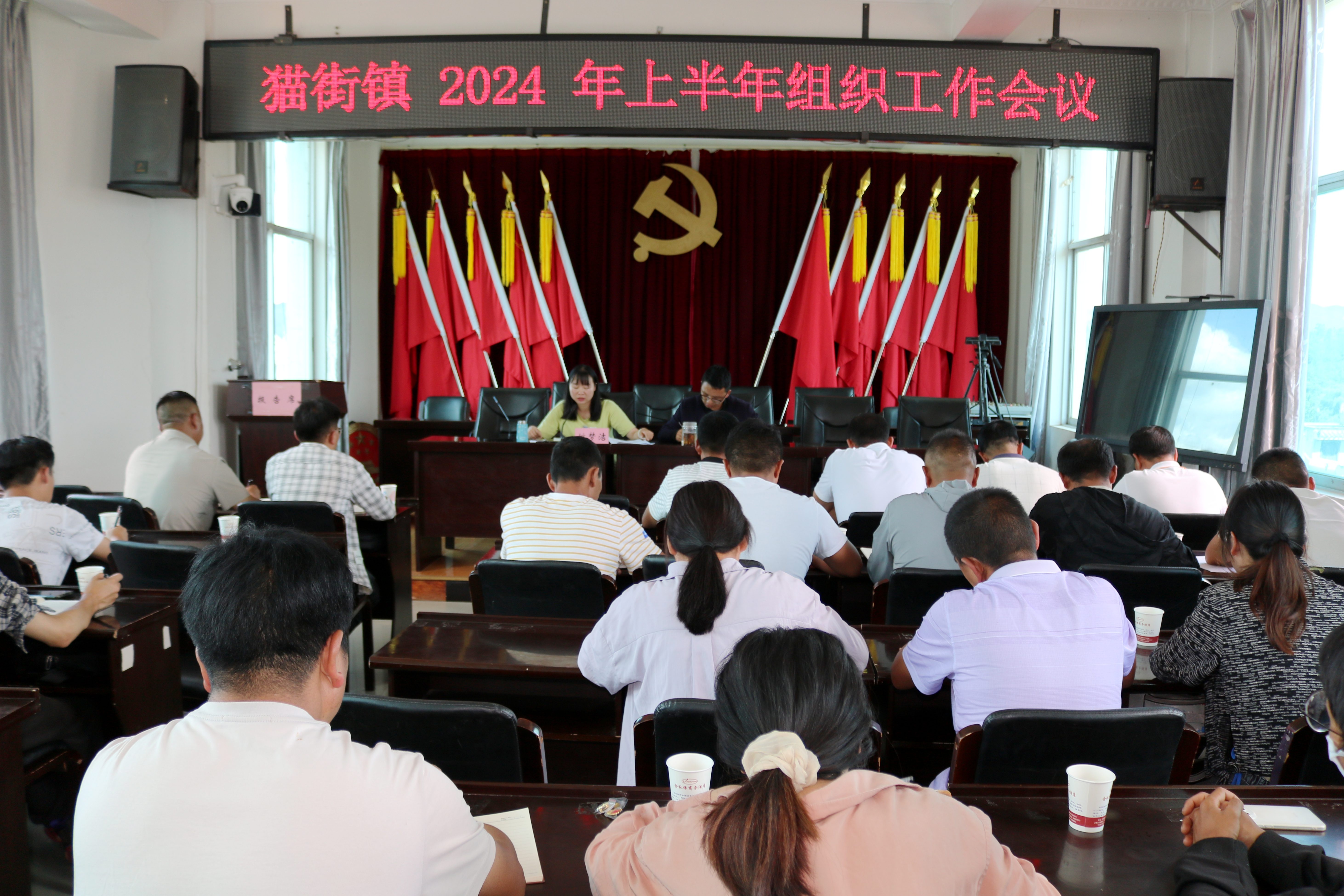 8月5日,猫街镇召开2024年半年组织工作会议暨基层党建工作调度会议。组织学习党的二十届三中全会精神及全州上半年组织工作会议精神,总结梳理上半年工作,安排部署下半年任务。猫街镇党委副书记董纬、组织委员姚梦洁、党建办工作人员、15个村党总支书记、副书记共计34人参加会议。