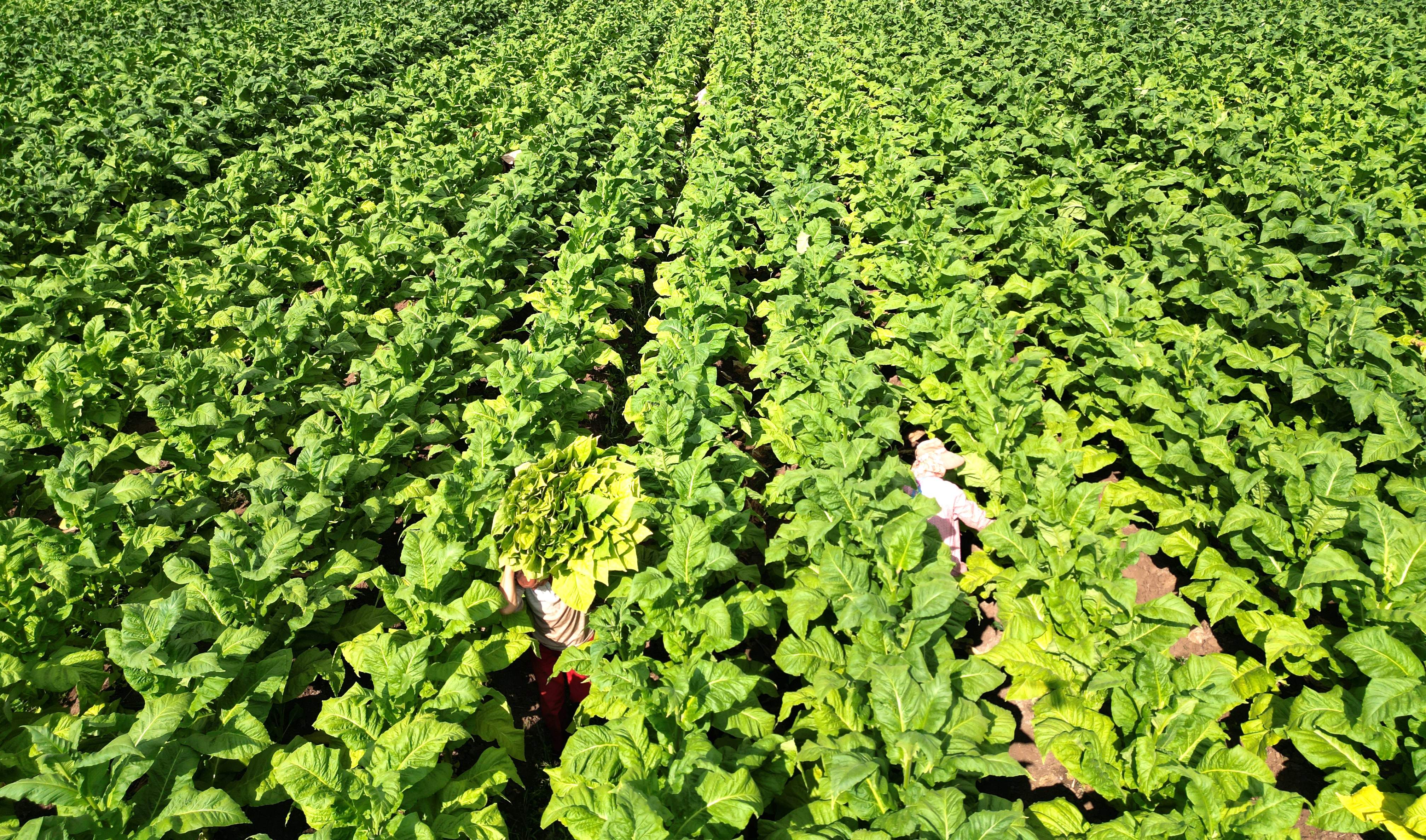 走进猫街镇白云庵平地村烤烟连片种植示范区(县长样板烟区),绵延成片的烤烟,青黄交织,一株株烤烟色泽鲜亮,烟叶肥硕壮大、长势喜人,烟农们在烟田间来回穿梭忙着采摘烟叶,微风吹过,烟叶摇曳,烟农笑开颜,宛如一幅生动的丰收画卷。