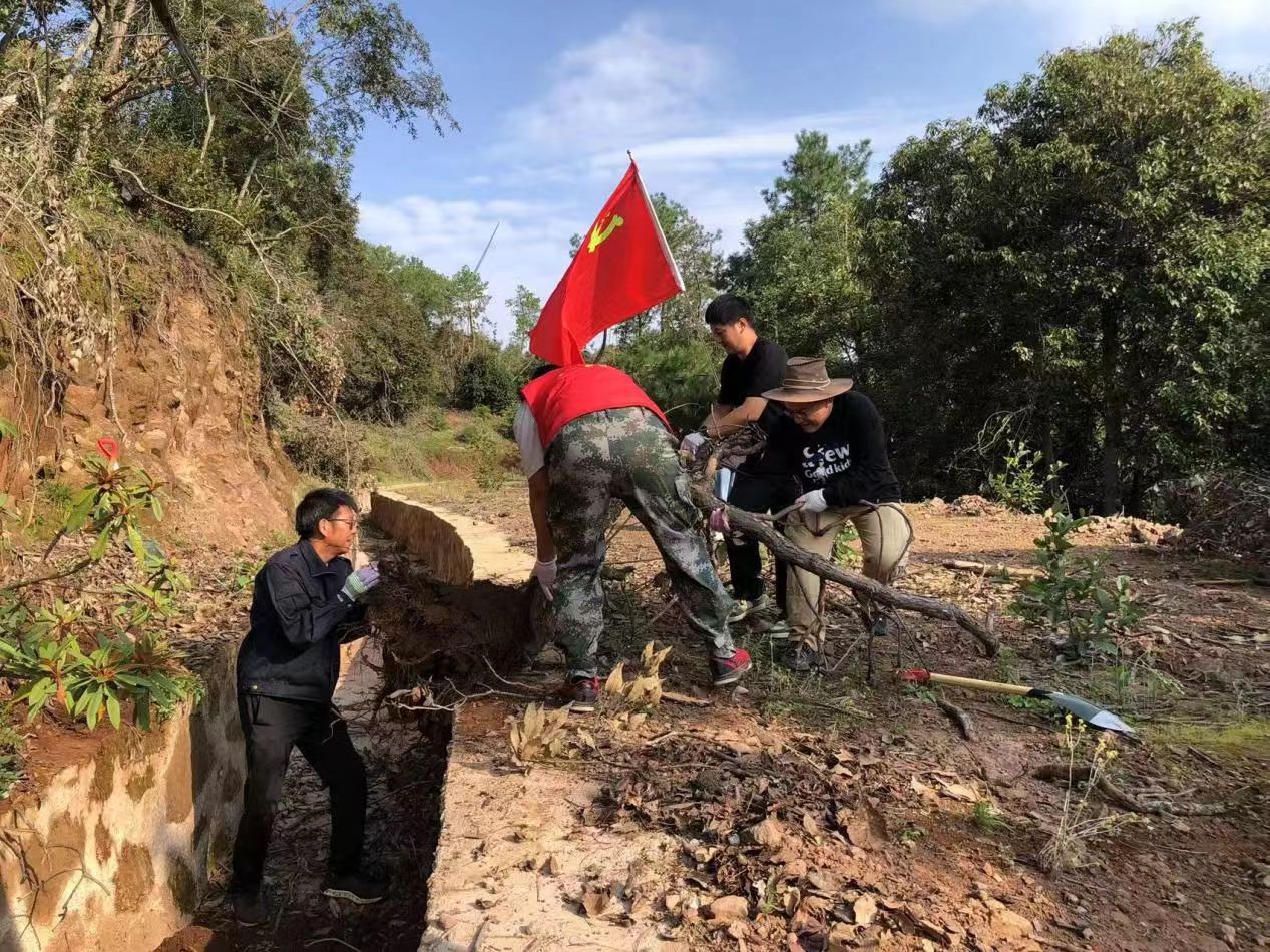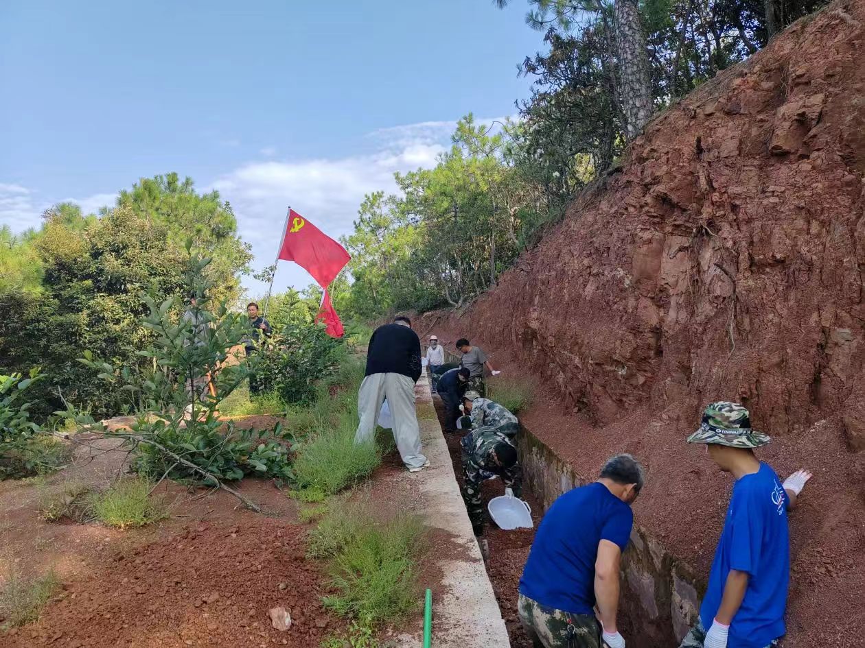 在万松山小水坝,荞山村党总支组织党员干部、群众、驻村工作队清理沟渠,充分发挥党员干部的示范带头作用,带动群众撸起袖子、卷起裤子,使用铁锹、锄头、铲子等工具,沿着沟渠进行清理疏通,对沟渠中的杂草、树枝、垃圾“死角”、淤泥“顽疾”、砂石等进行了全面清理,确保了引水、排水畅通。