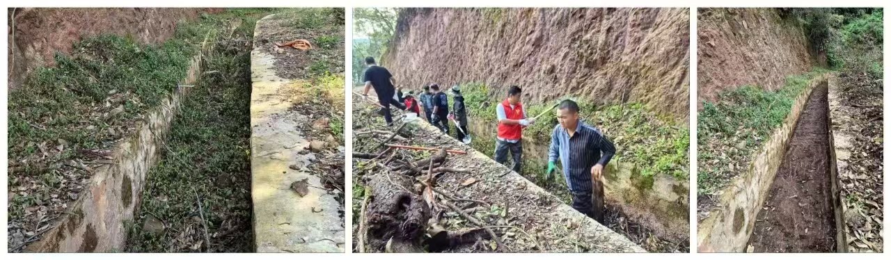 环州乡拉务村长塘子的部分水渠,由于长期淤泥堆塞,杂草丛生,入水口堵塞严重,为做好附近群众农业用水基础保障,20余名干部群众奔赴堵塞水渠埋头铲除淤泥石块、枯枝杂草。同样,在荞山村万松山小水坝周边沟渠段,工作人员也正如火如荼地开展清淤行动。“这里的水渠都被枯树、杂草覆盖了,还有之前下雨冲下来的沙子、泥土,水流进入库塘相当缓慢。这次清理完后,用水量也有保障了,我们非常满意。”正在附近干活的李大叔高兴地说道。