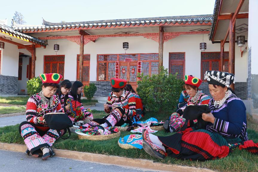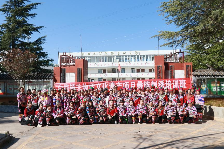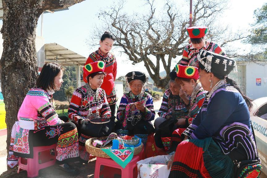 技能培训+彝绣,提升绣技增动能。依托白路镇彝绣车间、新时代文明实践所、绣艺学堂,借助沪滇协作、招商银行帮扶等政策,整合各类培训资源,邀请国家、省级、州级彝族刺绣、彝族剪纸非遗传承人对绣娘进行面对面指导。近年来,共举办彝绣培训10余次,培训绣娘1000余人次。