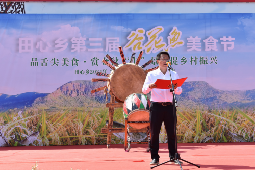 开幕式上,县人民政府副县长、党组成员张美权宣布活动开幕。田心乡党委书记罗永安表示,谷花鱼是田心的一张名片,也是我们生活中一种美味。我们将秉持以节会友、广交良朋的理念,把每一届谷花鱼美食节办成一次交流的盛会、一次文化的盛会、一次展示的盛会、一次收获的盛会,持续提升田心的名气、集聚更多的人气、吸引各方的财气,为推动田心高质量发展、全县旅游特色产业的开发建设注入新的强劲动力。