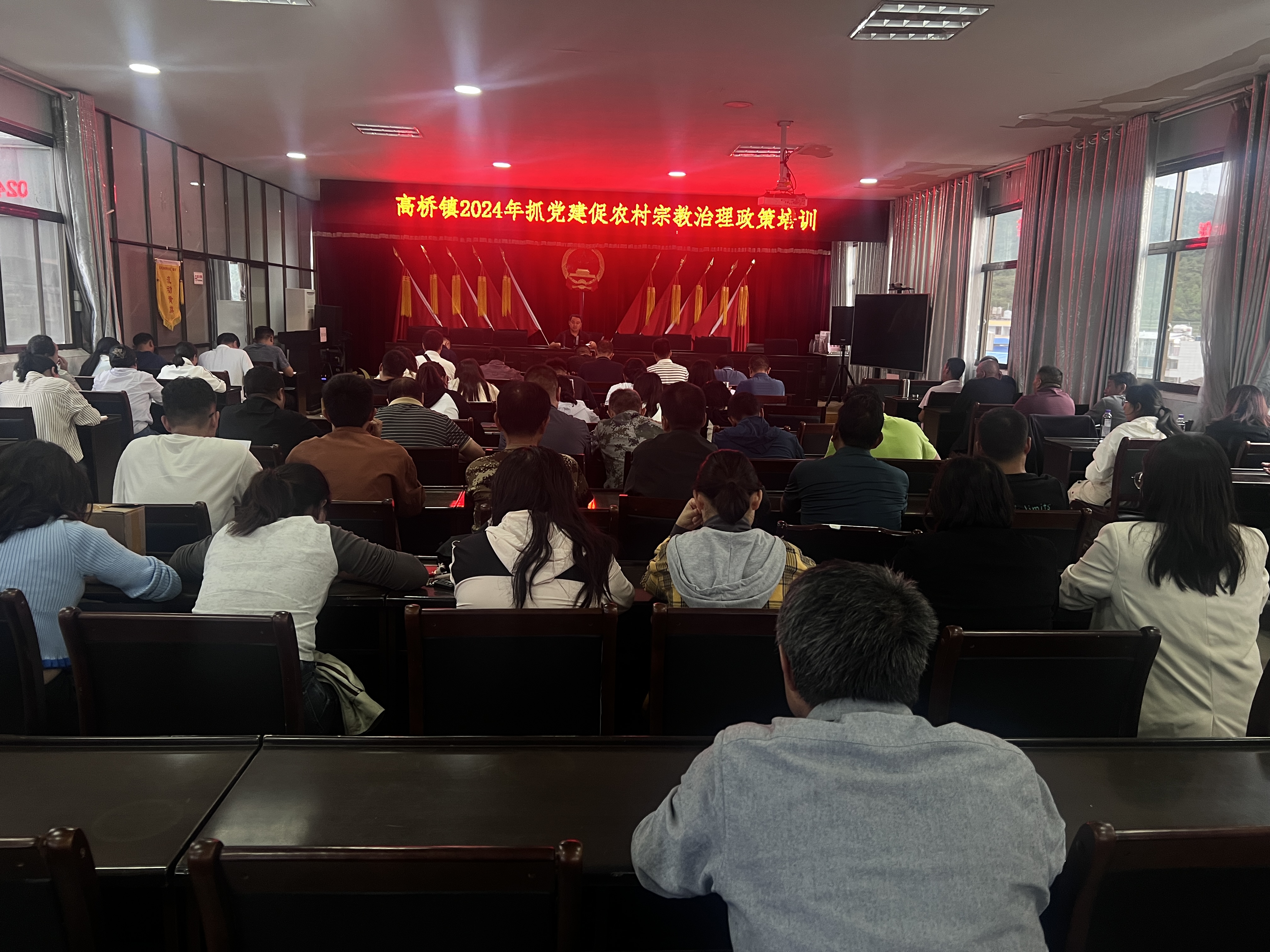 为学习贯彻落实党的二十大精神、二十届三中全会精神、习近平总书记关于宗教工作的重要论述,不断提高依法治理宗教事务能力。9月2日晚,高桥镇结合“政策夜校”组织全体干部职工开展了抓党建促农村宗教治理政策培训会。