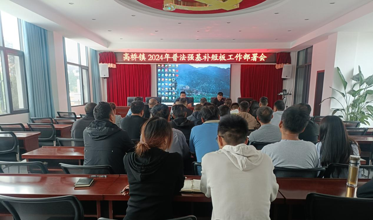 为深入学习贯彻党的二十大精神和习近平法治思想,全面落实省委、州委、县委关于普法强基补短板专项行动工作的任务要求,推动法治宣传教育深入人心,9月9日,高桥镇组织召开普法强基补短板专项行动工作部署会。镇党政班子成员,派出所、司法所负责人,五办两中心一队负责人,17 个村党总支书记以及平安法治办全体成员参加会议。普法强基补短板指导小组组长钱国君到会指导。