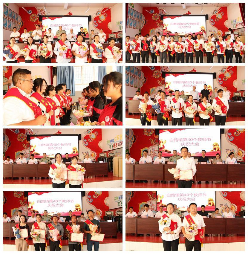 宋允华在讲话中代表镇党委、镇政府对受表彰的教职员工、优秀学生、家长代表表示祝贺,对全镇广大教师和教育工作者致以节日问候,并感谢支持教育工作的先进个人。他指出,一教育是国家大计,必须办好人民满意的教育。确保白路教育总体发展水平与白路发展需要相适应,与白路社会经济发展地位相适应,与人民群众对优质教育工作的需求相一致,确保白路教育发展总体水平达到全县中上。二学校是育人的摇篮,必须坚定立德树人的政治方向。学校和教育工作者要以立德树人为核心,大力推广“激励+”工作法,全员立人、全程立人、全方位立人。三教师是人类灵魂的工程师,必须手中握着真理心中装着学生。要求教师做到政治要强、视野要宽、思维要清、情怀要深、自律要严、人格要正。四学生是家庭的希望和祖国的未来,必须从小积极培育和践行社会主义核心价值观。学生要将社会主义核心价值观内容记在心中,要以少年英雄为榜样。五家庭是人生的第一所学校,家长是孩子的第一任老师,必须抓实人才培养的硬件工程。要注重家庭建设,注重家风,注重家教,家长要言传身教,既要教知识,又要育品德。