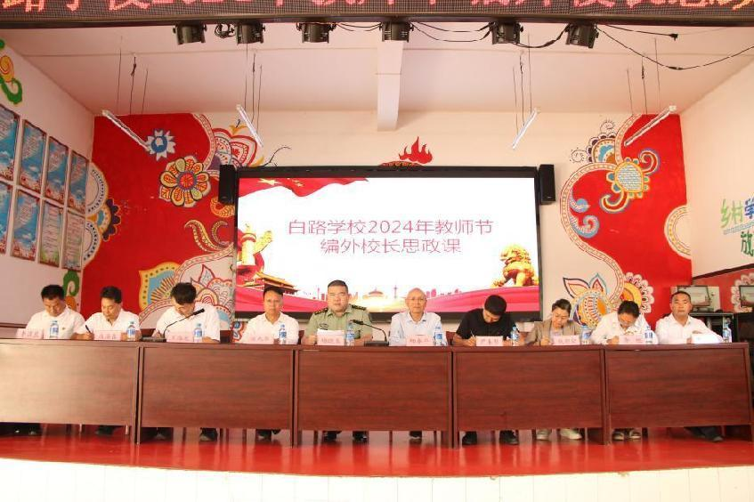 镇党政领导班子成员,白路学校全体教职员工,10个村委会党总支书记、主任,学生代表,家长代表等180余人参加会议。
