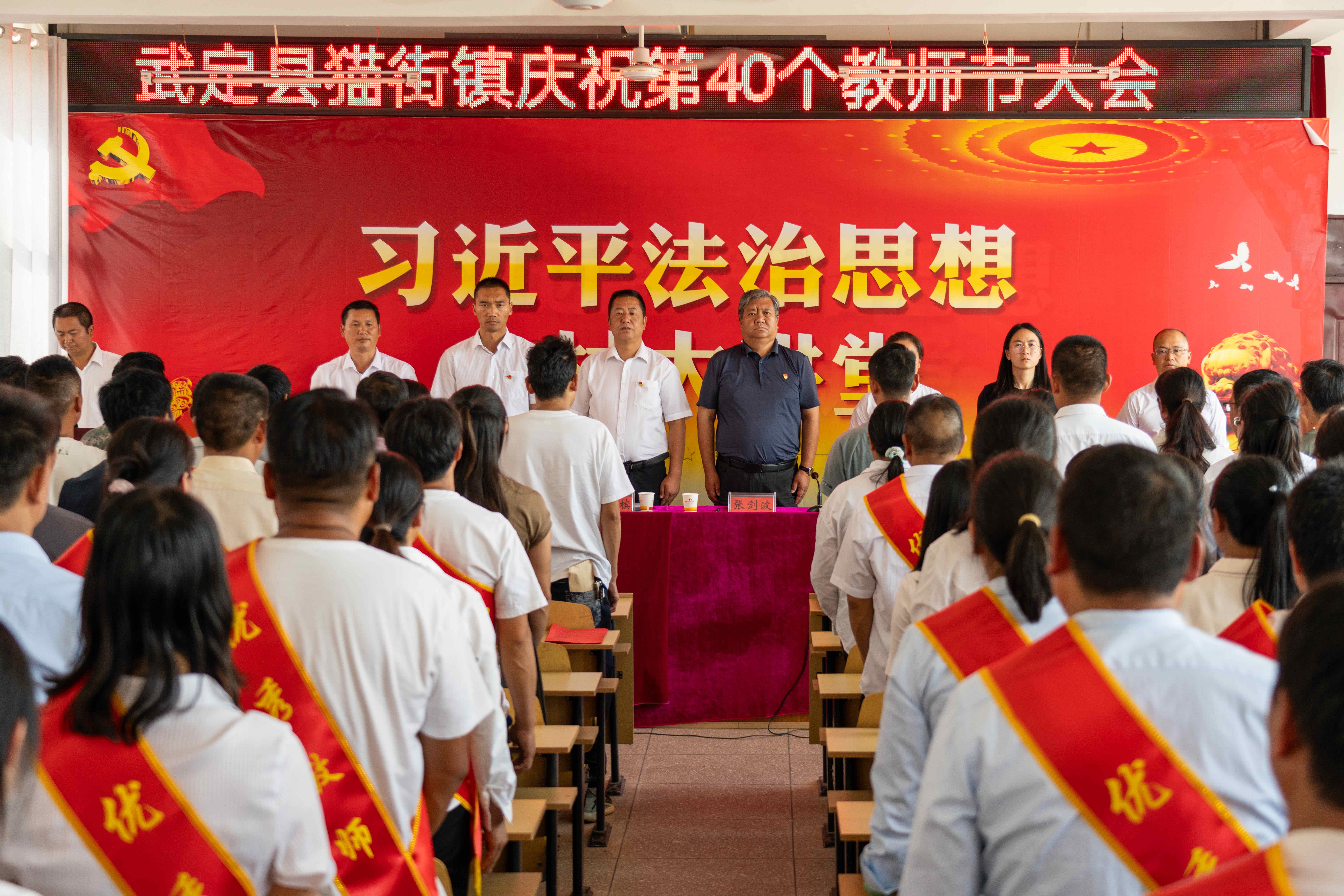 9月14日,猫街镇召开教育工作会议暨第40个教师节表彰大会,向辛勤耕耘在教育一线的广大教师和教育工作者致以崇高的敬意和节日的问候。县政协副主席张剑波,县教育工委副书记袁钰帧,团县委副书记宁珊,猫街镇党政班子成员,15个村党总支书记、村委会主任,猫街学校受表彰的优秀教师及部分教师代表参加会议。