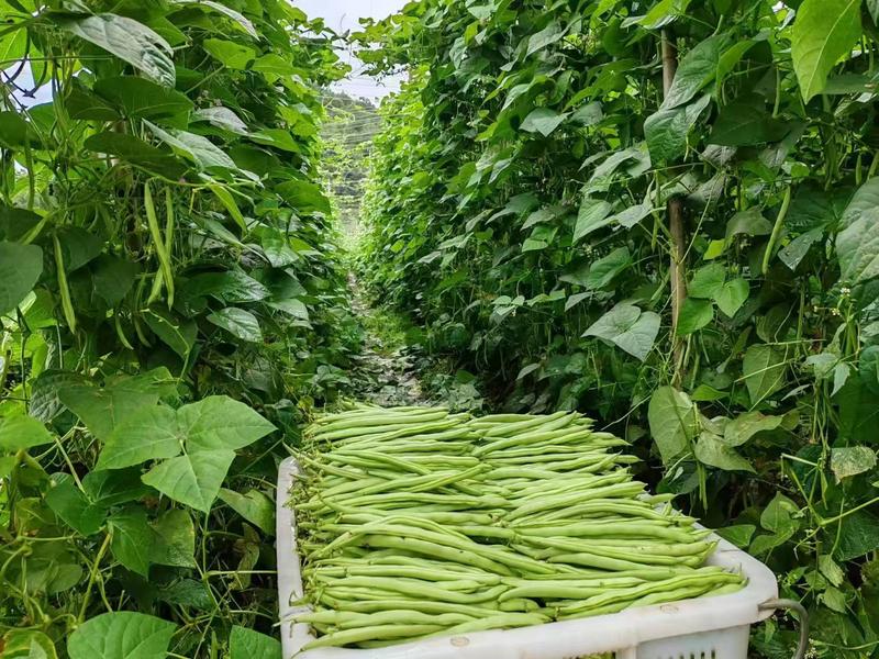 近日,武定县插甸镇水城村种植的无筋豆迎来了丰收。走近无筋豆种植基地,映入眼帘的是一排排绿油油的藤蔓,豆架郁郁葱葱、绿意盎然,修长的豆荚顺着架子自然垂下,翠绿饱满,水城河如玉带环绕着豆地,一幅美丽的乡村画卷映入眼帘。