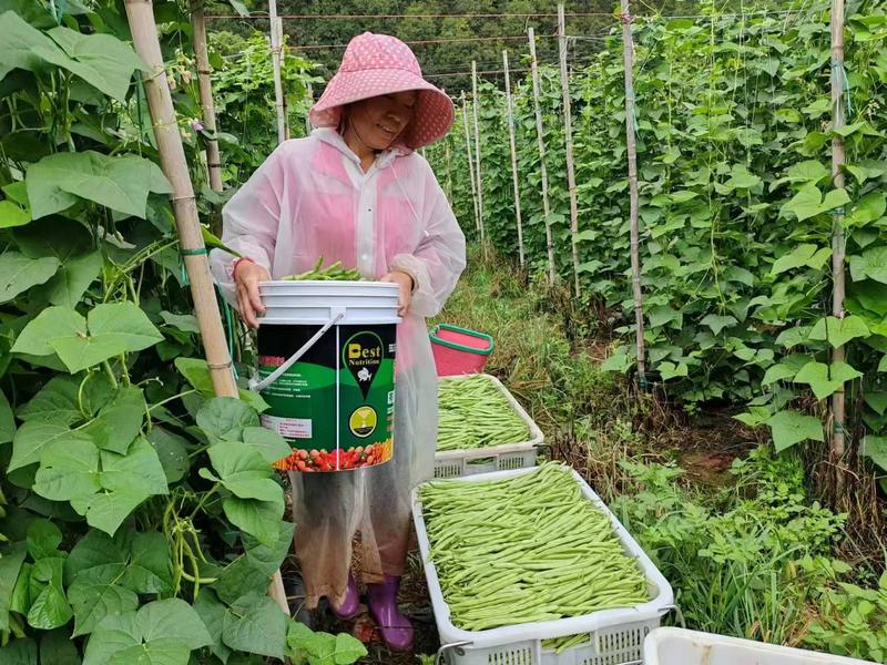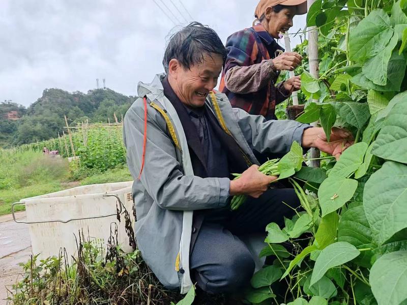 “我今天是第一次来摘无筋豆,不是很熟练,早上摘了58公斤。我们村今天有60多个人在摘。这个产业还是可以的,比去山上捡菌子把稳,每采摘一公斤无筋豆老板付我们0.8元工钱,都是按日结算,钱装在包包里心里比较踏实。”正在豆地里摘豆子的水城村民蒋开章说。