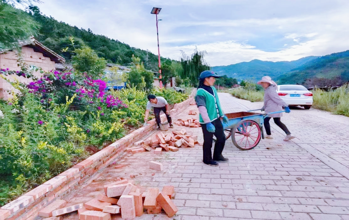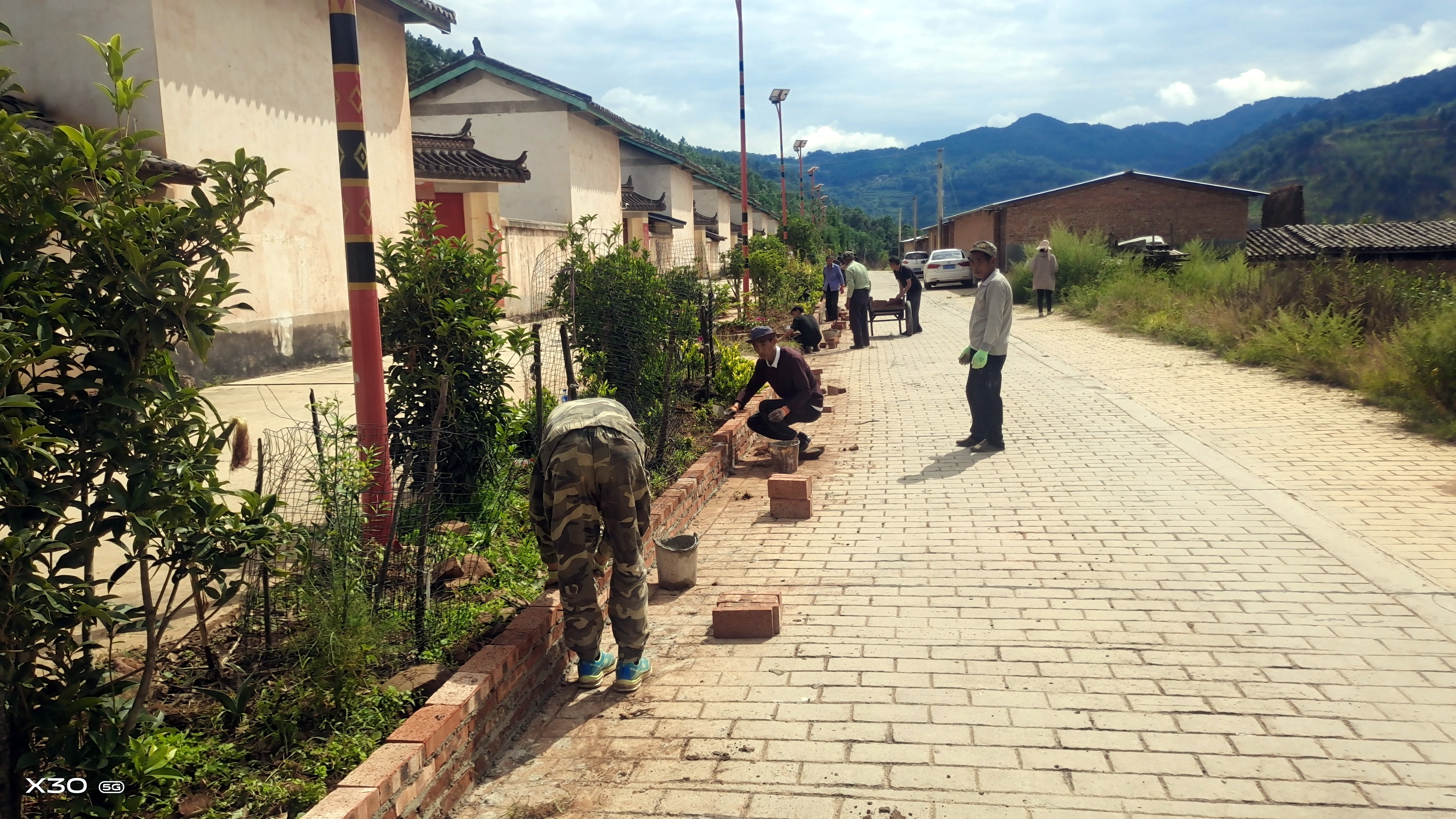 在村“两委”的带领下,党员干部、公益性岗位人员及驻村工作队对清河一组移民搬迁点沿线主干道和村内空闲地开展路肩、边沟、边坡修整、杂草清除,村组道路绿化带、村庄边角地等处,因地制宜修缮花台、栽花种草。在施工现场,大家挥洒汗水、分工协作垒砌花台、挖土放苗、移栽草木、浇水施肥,精心打造清河一组移民搬迁点道路微景观、绿化小花台,达到“一路一角皆是风景”“三季有花、四季常绿”效果。