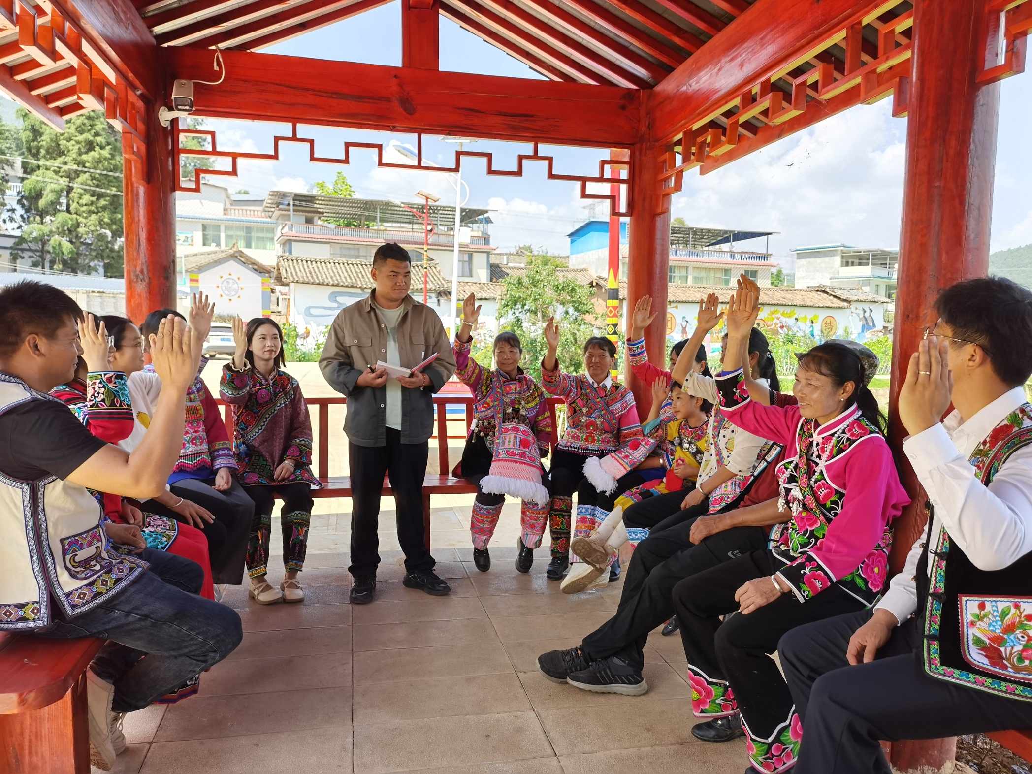 文化融入,特色彰显。大古普村在文化建设上也下足了功夫。利用彝族传统文化特色,大古普村把党建活动与民族文化活动紧密结合,让民族文化的瑰宝成为乡村建设的精神滋养。随着一系列节日活动、文体活动的不断丰富,大古普村村民享受着富足的精神文化生活,彝族的特色文化得以在新时代大放异彩。