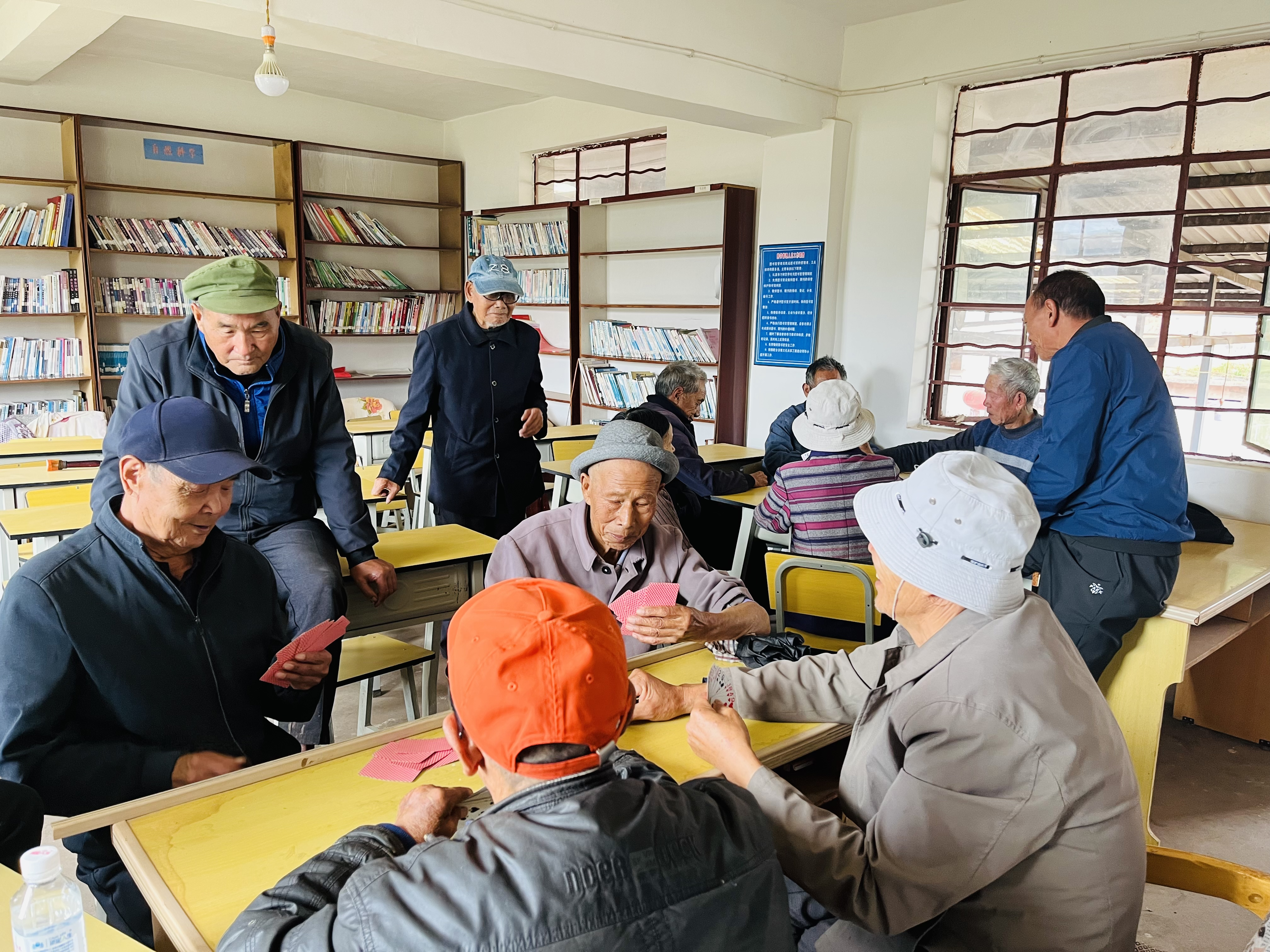 与此同时,在棋牌娱乐区,一场“双扣比赛”正式开始,老人们以牌会友,交流着玩牌的心得和技巧,一边拉家常一边出牌,玩得不亦乐乎。