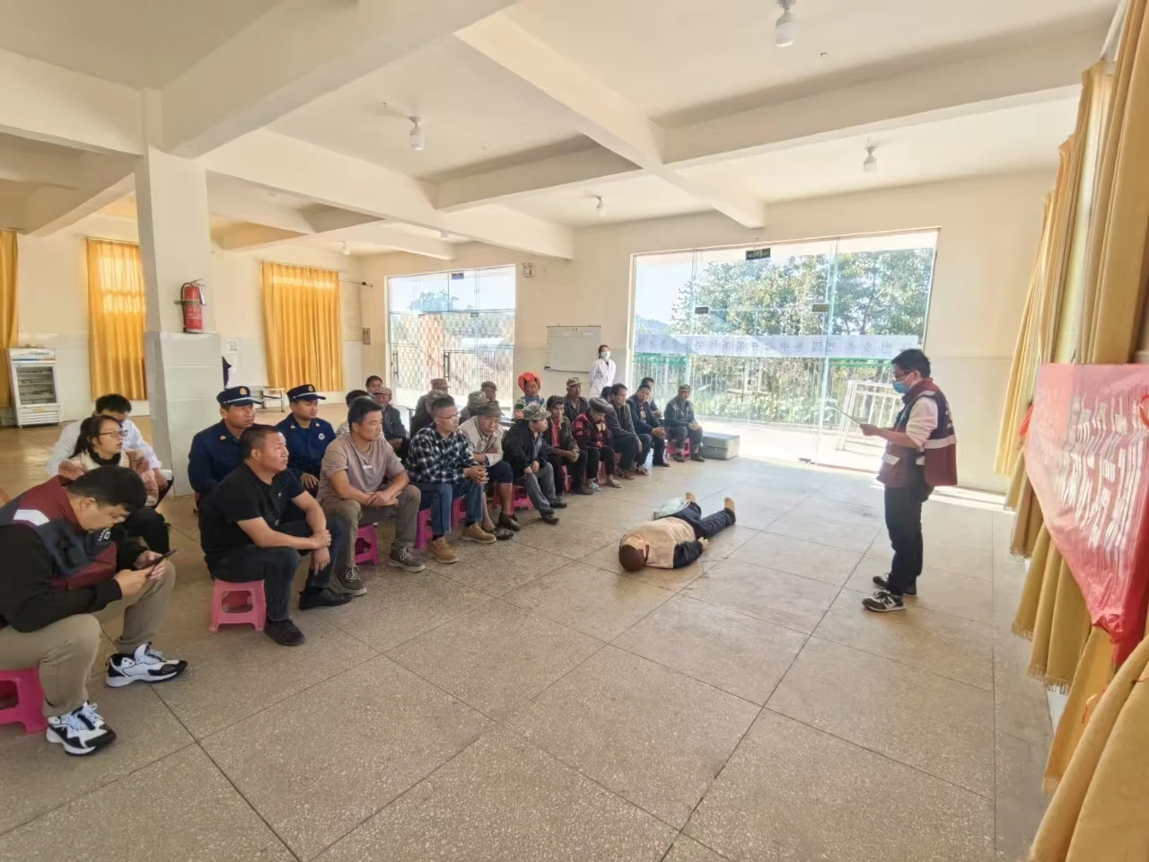 活动进入心肺复苏环节。培训讲师利用模拟人教具,生动地讲解了心肺复苏(CPR)的理论知识,包括心跳骤停的判断方法、胸外按压的位置、频率和深度,以及人工呼吸的技巧等。