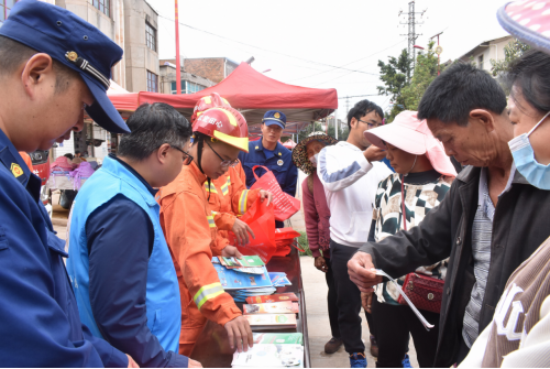 2024 年 11月9日是第33个全国消防日。为积极营造学习消防安全知识、遵守消防法律法规、落实消防安全责任、大力整改火灾隐患的浓厚氛围,11月5日,田心乡人民政府专职消防队利用“赶集日”人员集中的优势,在田心集镇组织开展消防安全宣传活动。