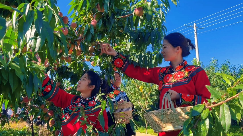 初冬时节,云南省楚雄彝族自治州武定县发窝乡代家村委会代家村500余亩的冬桃林呈现出一派丰收的景象。一个个饱满圆润的冬桃挂满枝头,散发出诱人的香甜气息。这片原本荒芜的山地,如今已成为村民们增收致富的“金果园”。