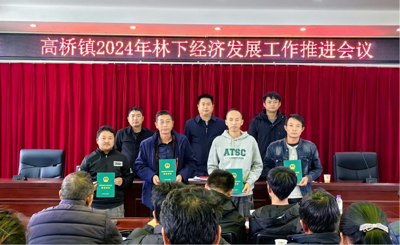 会上为武定沐云农业科技发展有限公司、王绍荣、张再能、宋春靖颁发了高桥镇第一批林下经济经营收益权证。