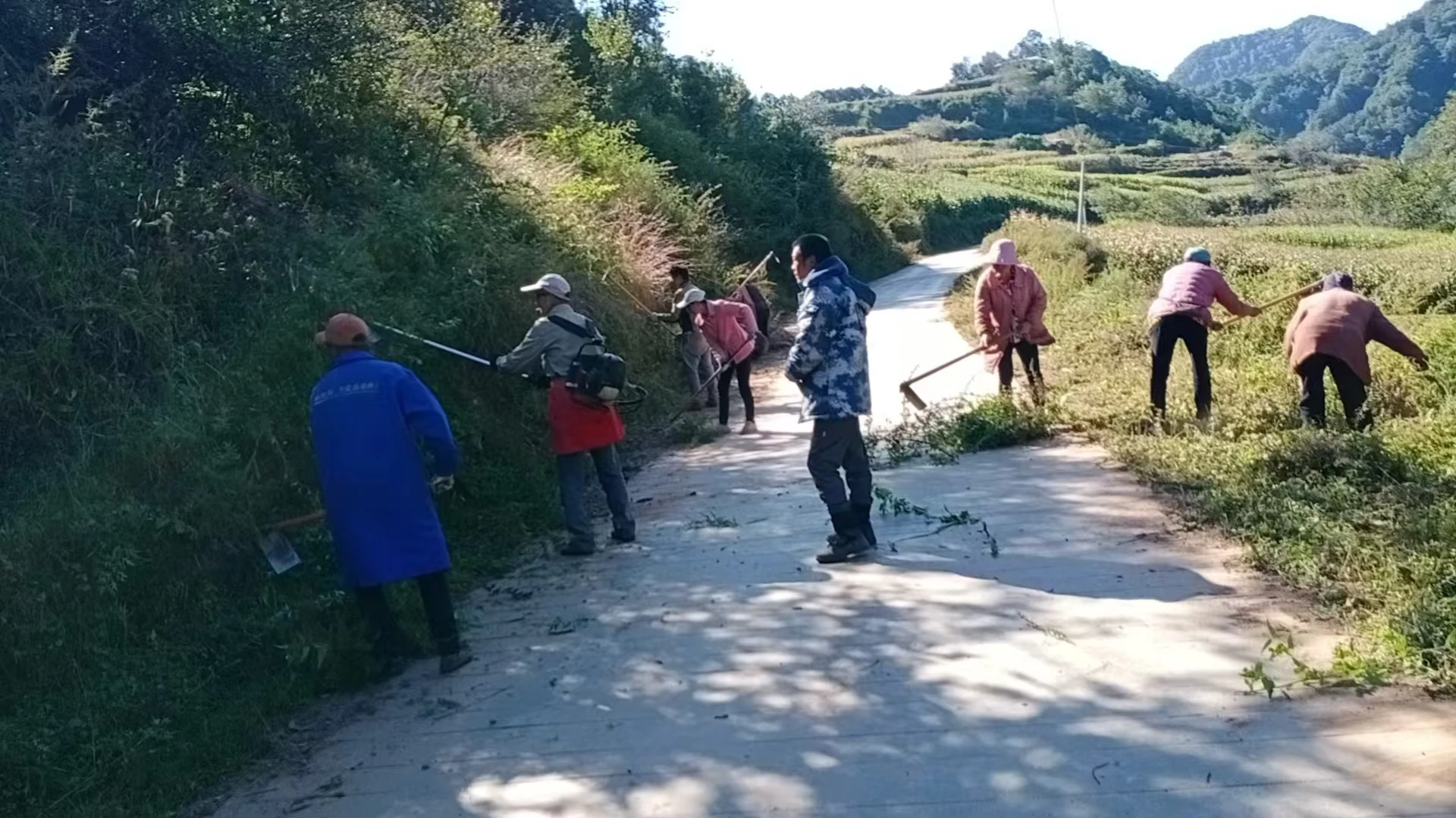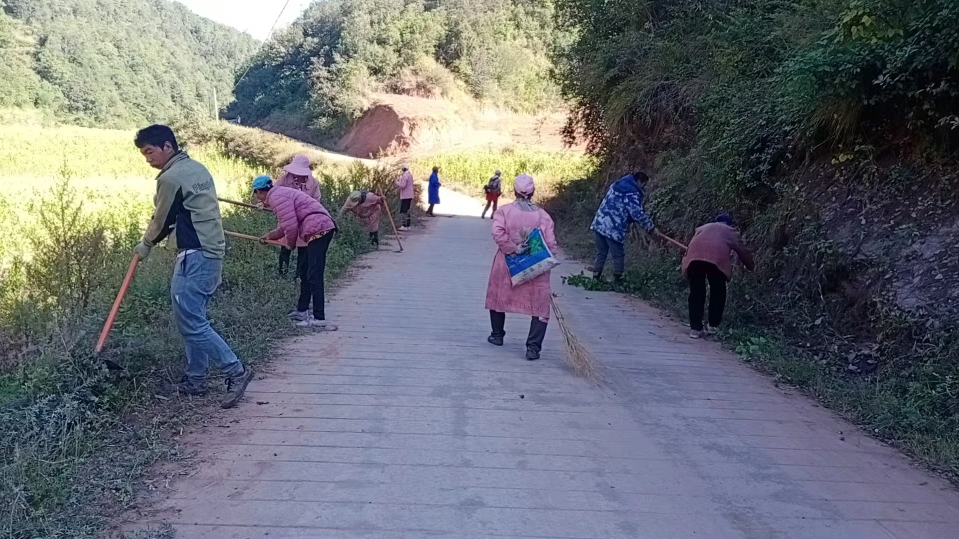 会后,大家迅速行动,分工明确,年轻力壮者背割草机在前开路,年长者持锄头、镰刀、扫帚等在后方优化。经全村在烈日下奋战数小时,村集体行动成果显著。
