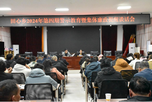 为切实强化以案示警、以案为戒,警醒党员干部强规矩、守责任、筑廉洁,11月27日,田心乡召开2024年第四期警示教育暨集体廉政提醒谈话,乡党政班子成员、全体干部职工、村委会干部、全体驻村工作队员共100余人参加会议。