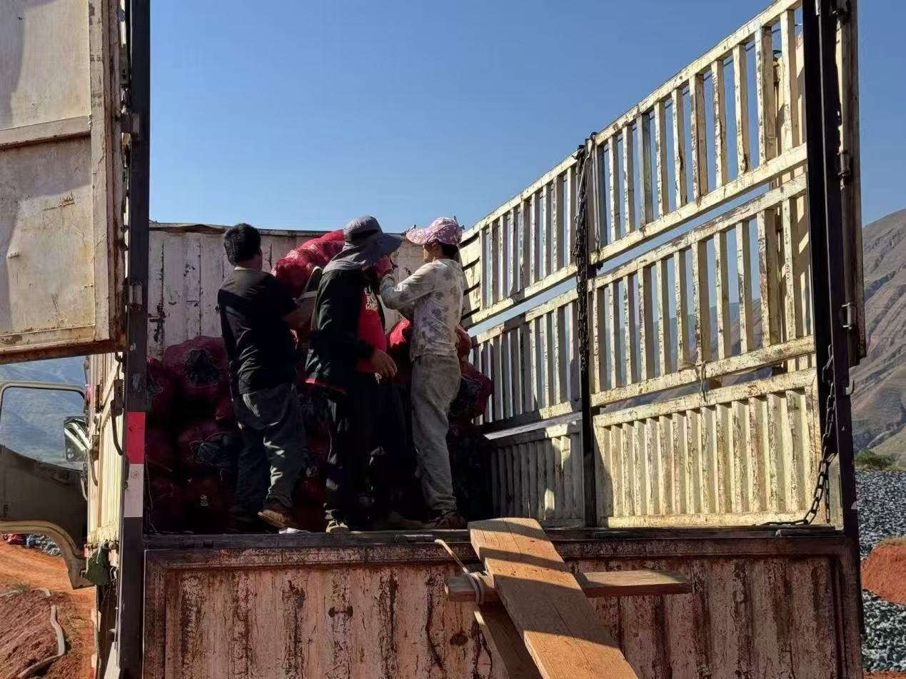 图为:紫甘蓝正在从小货车转装到半挂车,准备发往省外