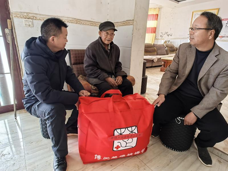 李郁聪先后深入小井、古黑村委会困难党员、群众家中,为他们送去暖心棉被和慰问金并向他们致以节日的问候和关怀。在小井村委会平阳村民小组困难群众李凤毕家中,李郁聪详细询问了李凤毕的健康状况及其家庭的生活状况,深入了解他们面临的困难和挑战,认真倾听他们的心声和需求。州检验检测认证院的关怀和鼓励,让李凤毕及其家人感受到了党和政府的温暖,增强了他们战胜困难的信心和勇气。