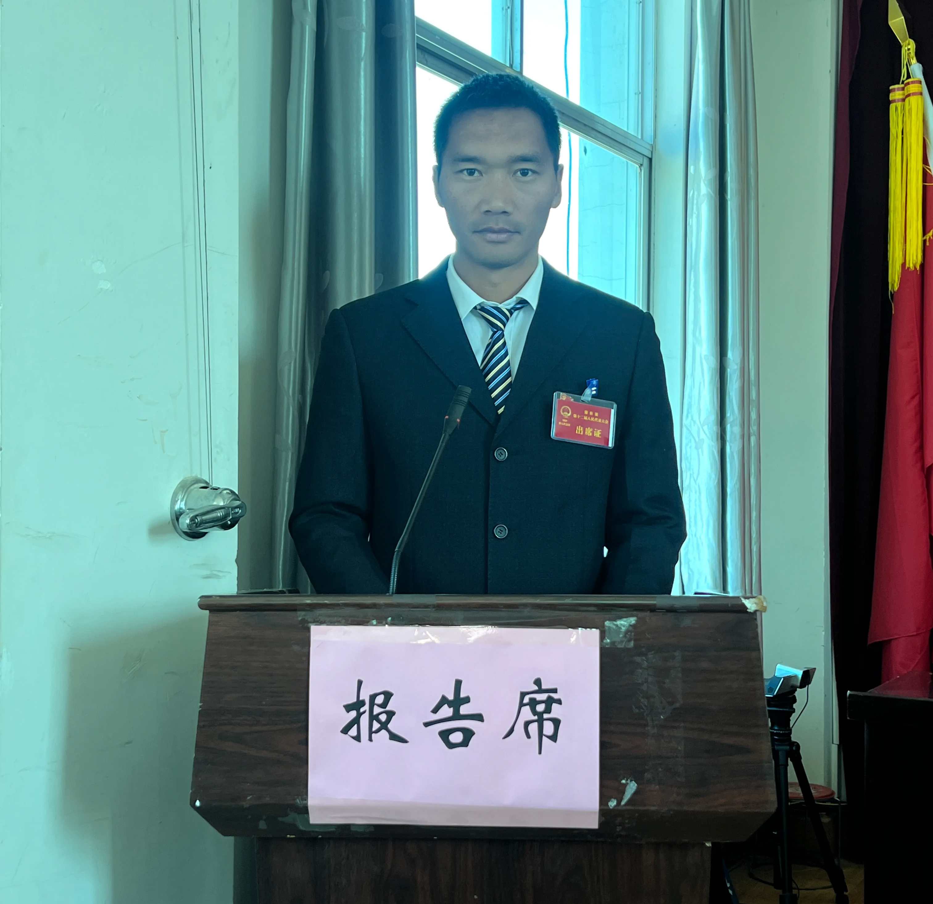 上午10:50时,大会在庄严的国歌声中拉开帷幕,镇党委书记虎圣槟主持第一次全体会议。