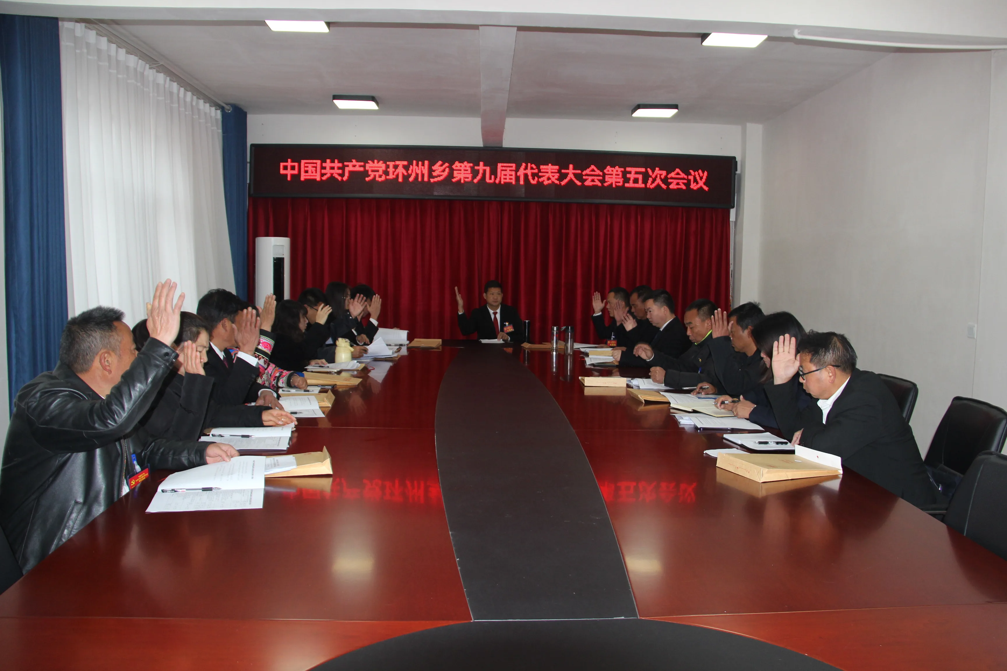 在圆满完成各项议程后,中国共产党环州乡第九届代表大会第五次会议在庄严的《国际歌》中胜利闭幕!