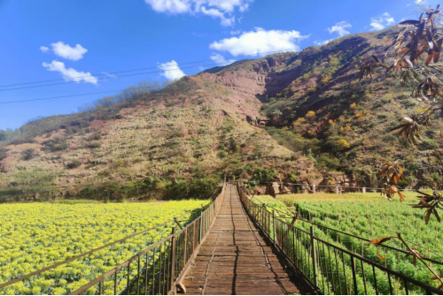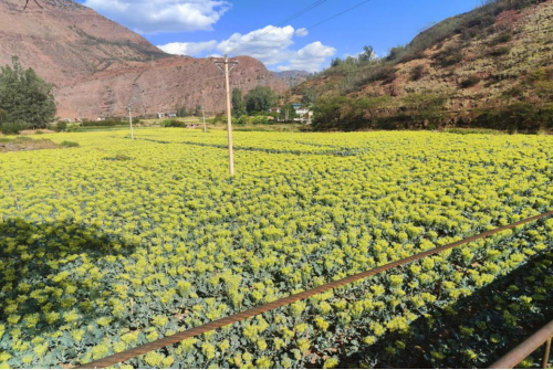 立春一候,东风解冻,新春余味尚在,一缕春风带来了新的希望。武定县田心乡鲁期村委会老把村村民李亚东一大早便起床,拿着镰刀,准备开始一天的劳作。顺着蜿蜒的小路往下走,远远望去,田野中无数金黄的花朵簇拥在一起,在朝阳的映衬下,宛如一张金色的地毯,随着视线铺展向远方,轻风拂过,泛起层层绚烂的涟漪。