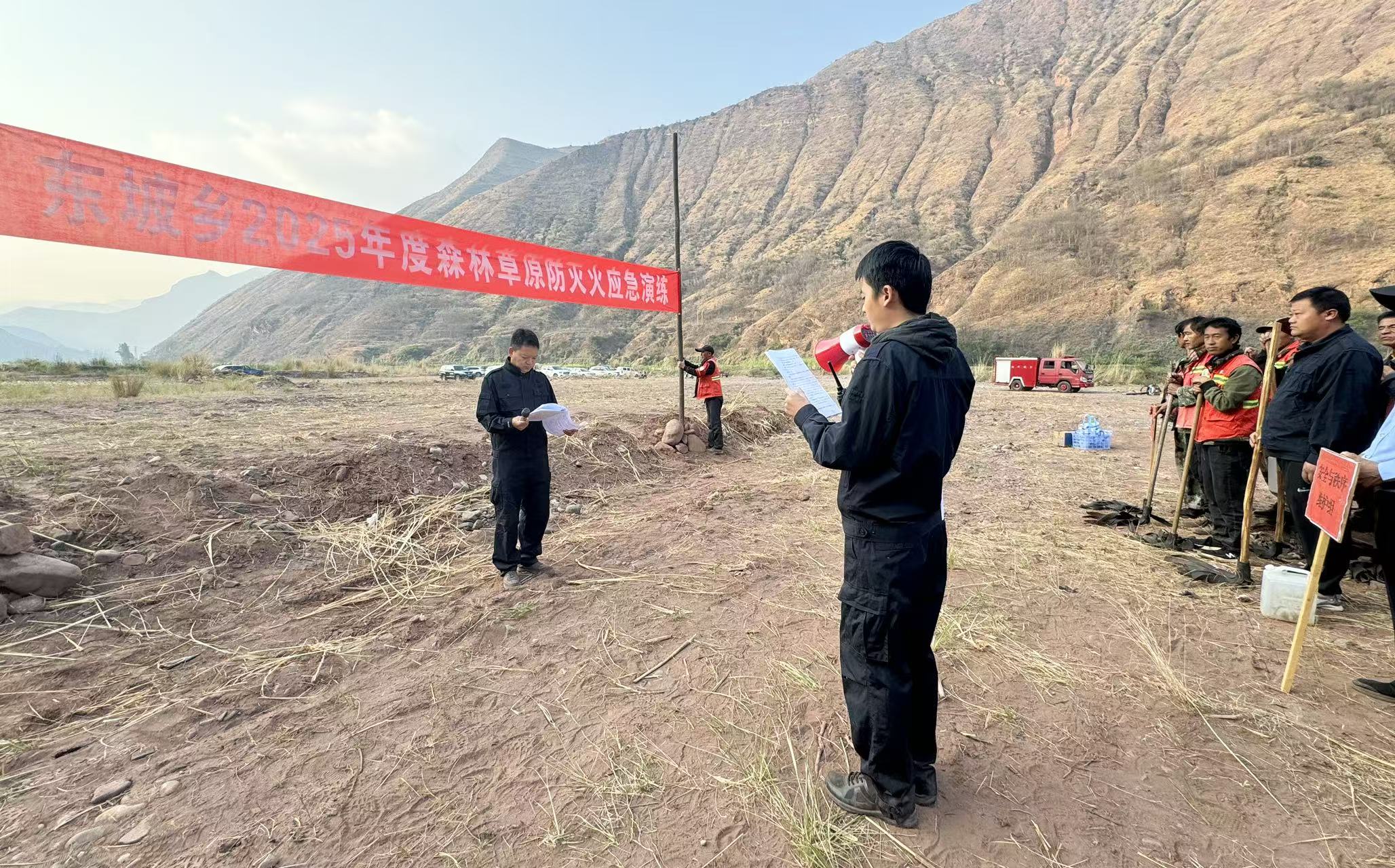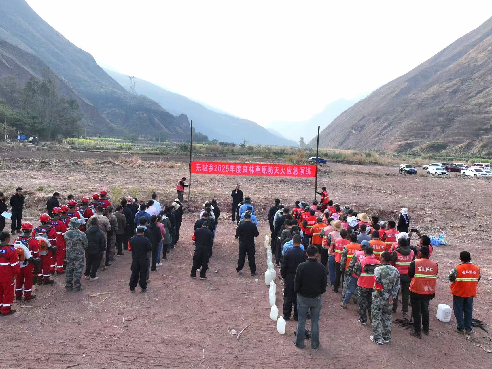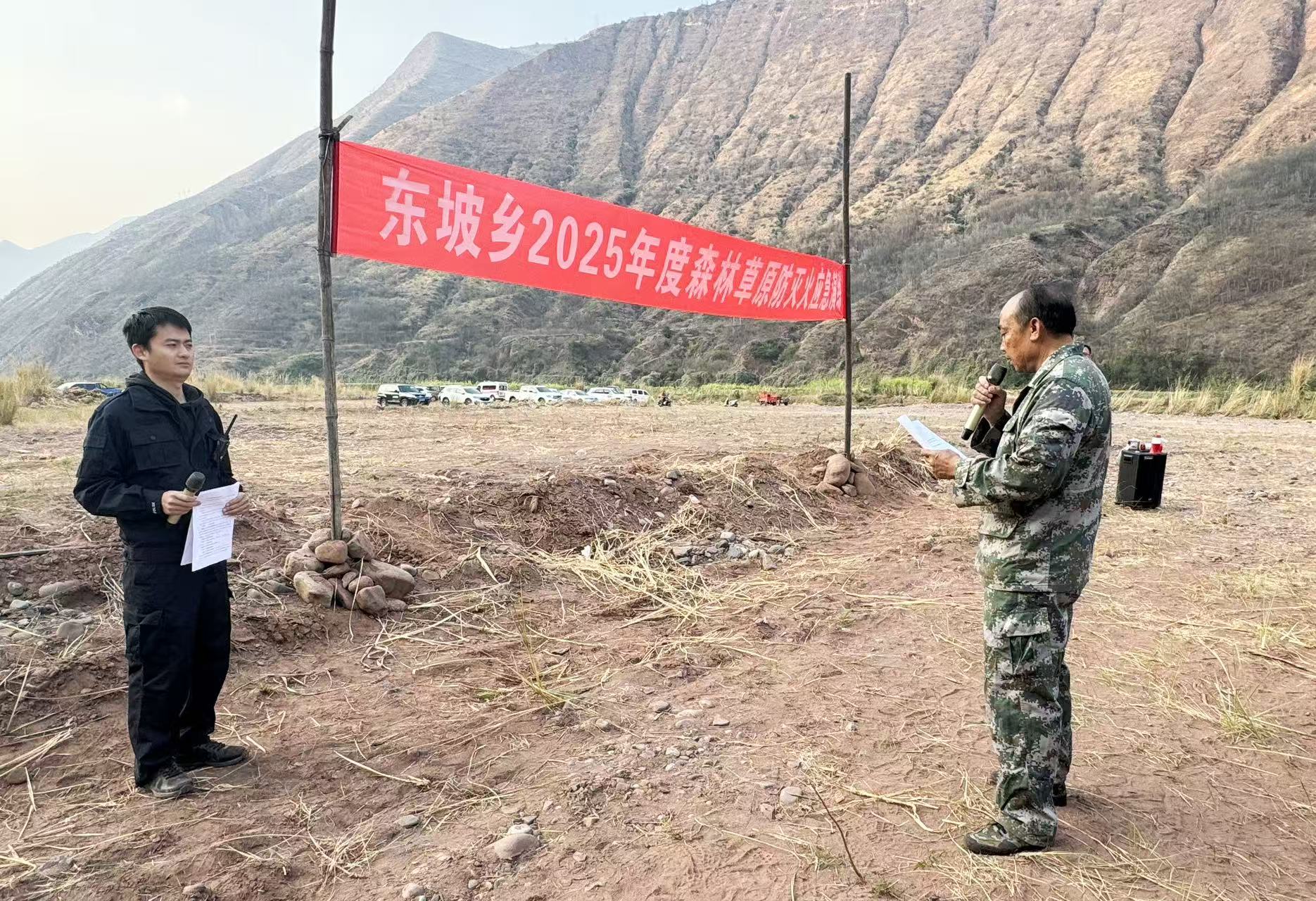 为进一步提升森林草原火灾应急处置能力,增强干部群众防火意识,切实保障人民群众生命财产和森林草原资源安全,2月14日上午,东坡傣族乡以“以演提技、以练备战”为主题,组织部分乡村干部、消防队员、护林员等50余人开展2025年森林草原防灭火应急实战演练。